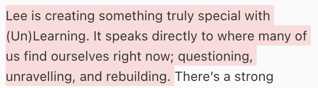 Because when your sense of identity is wrapped around the work, you lose agency without realising it. You start making decisions from fear - of letting people down, of being seen as difficult, of failing the thing you care about most. (Un)learning is for people who want to stay committed to meaningful work without disappearing inside it - and who are ready to choose themselves without burning it all down.